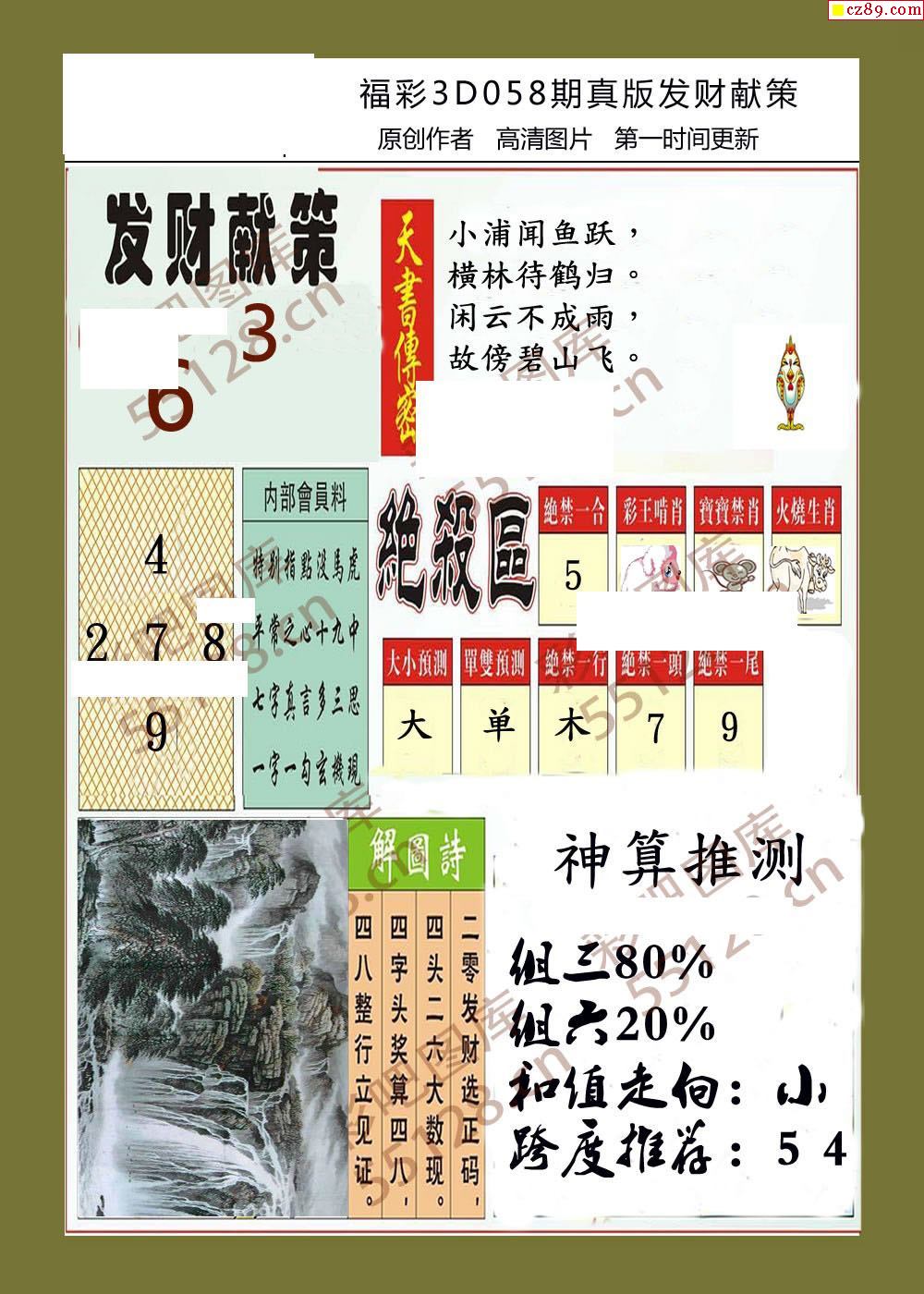 > 发财献策26年058期福彩3d字画报