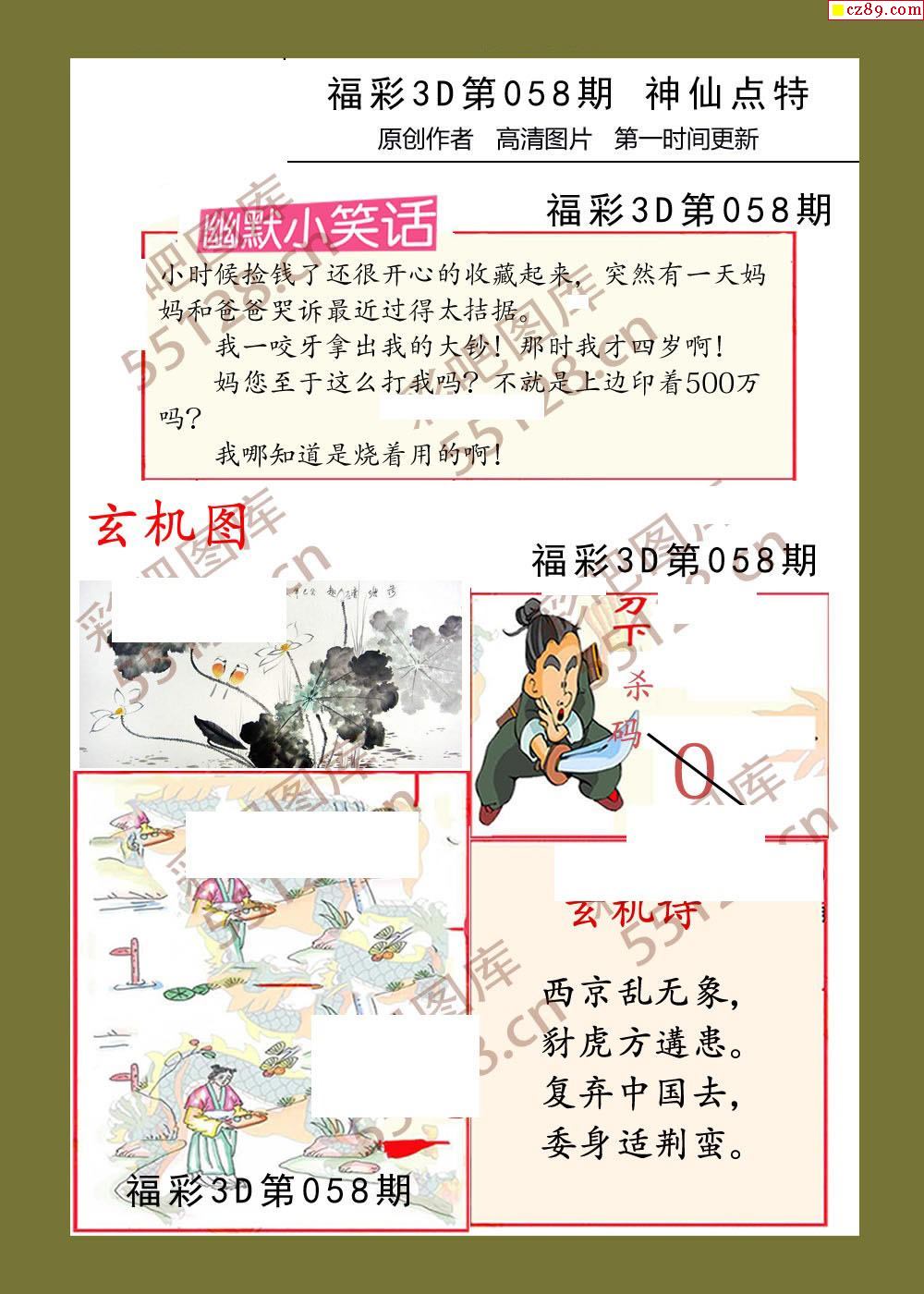 福彩3d26年058期神仙点特彩报