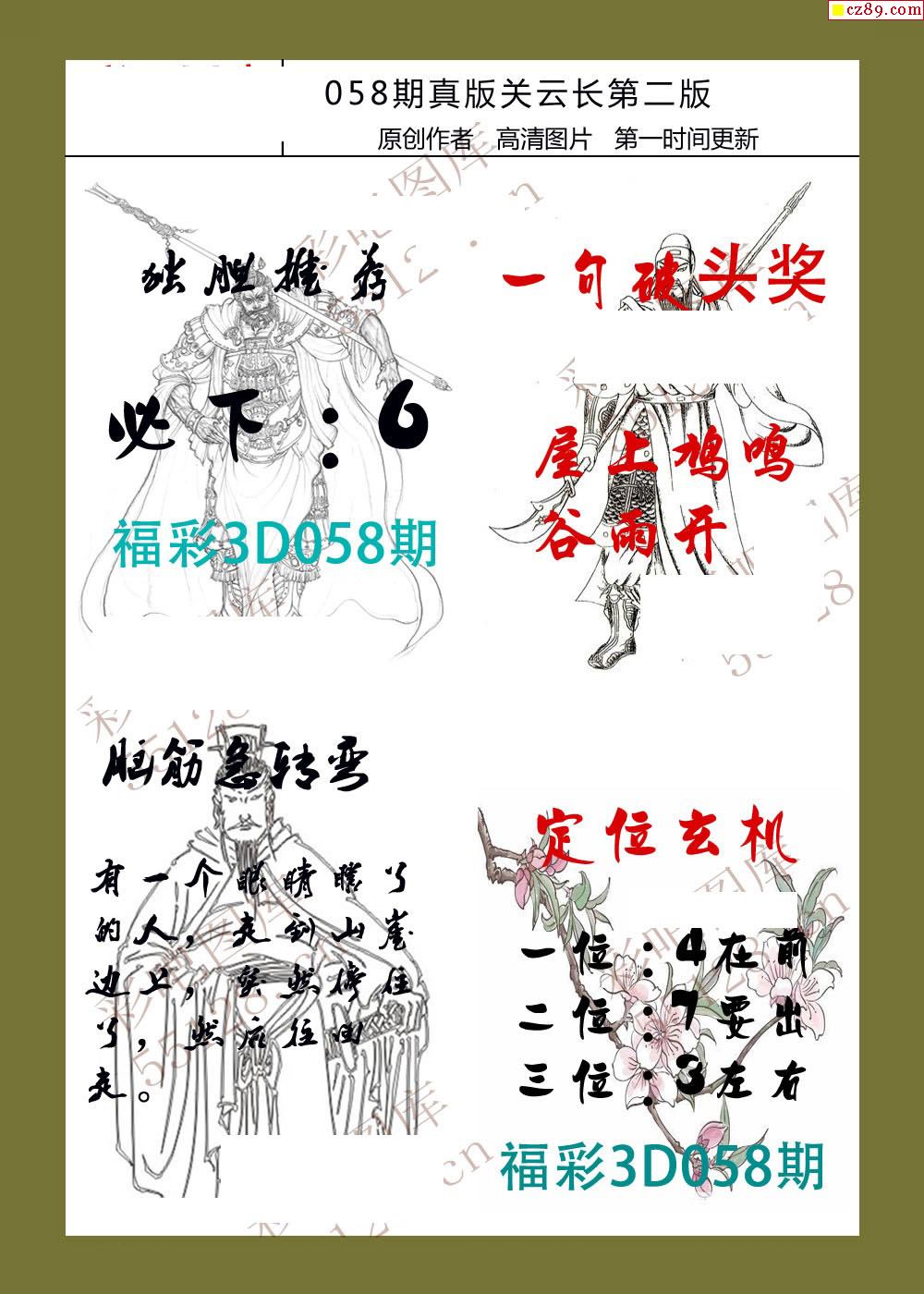 26年058期福彩3d真版关云长图谜