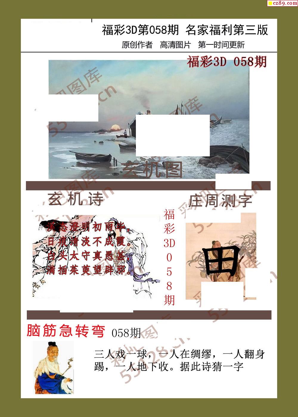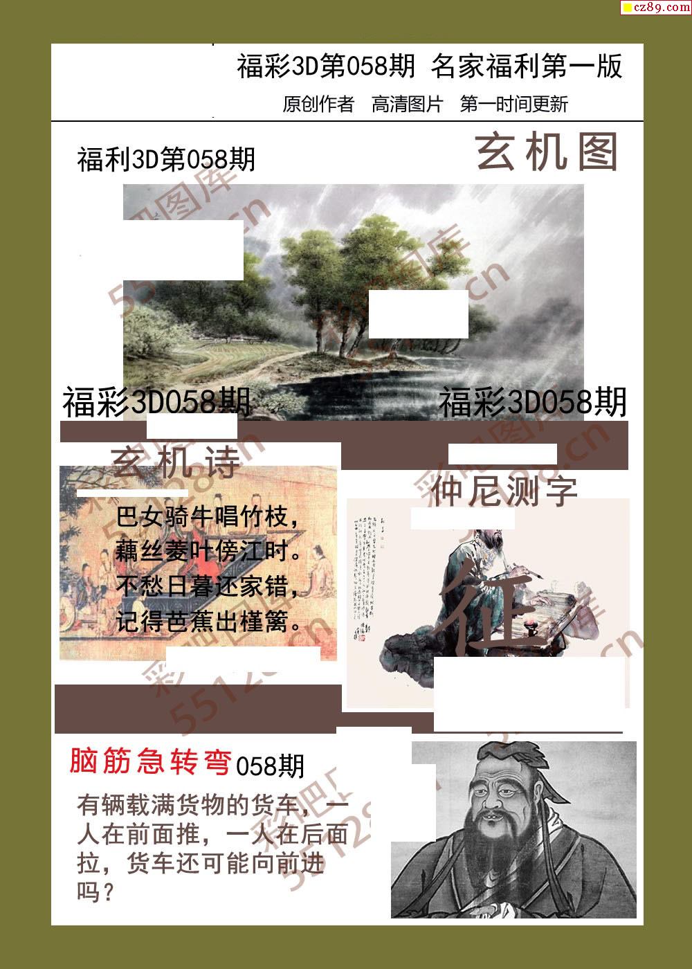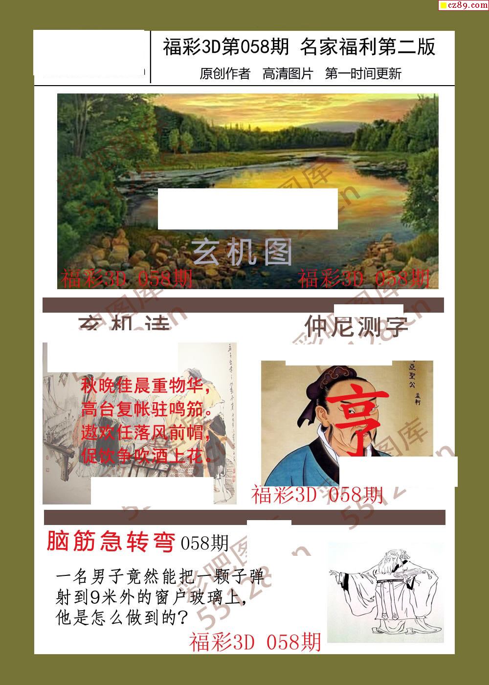 福彩名家福利彩票3d26年058期图谜