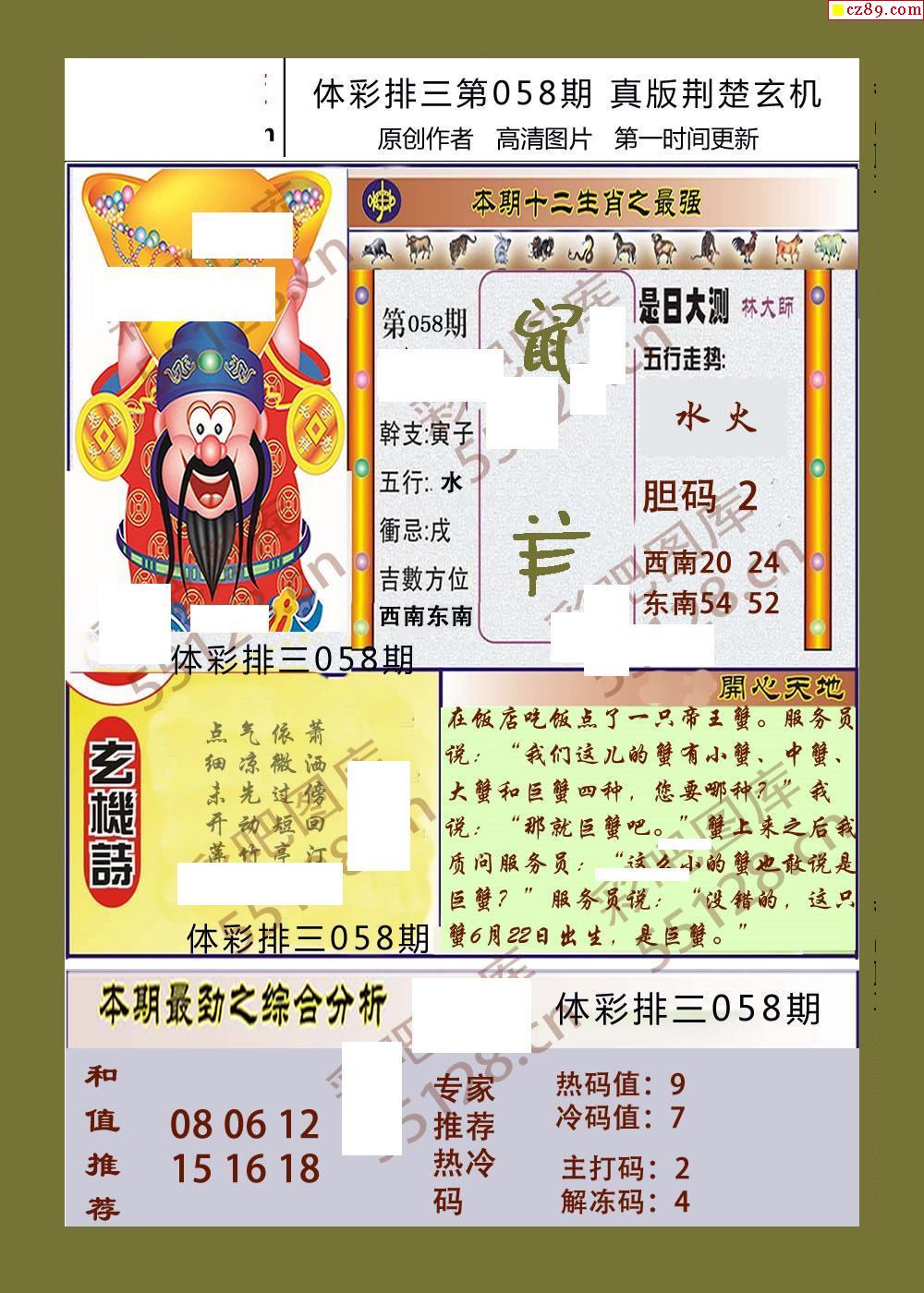 荆楚玄机058期体彩p3图谜