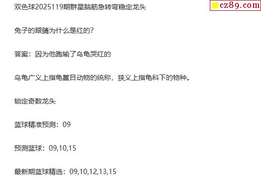 > 25年福彩双色球119期 群星脑筋急转弯定龙头字谜